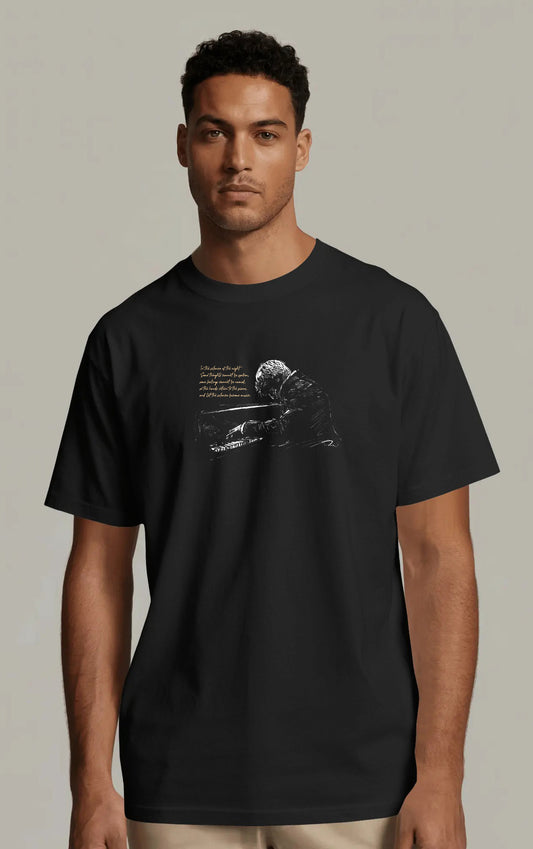 חולצת טי מודפסת פסנתרן – חולצה עם הדפס פסנתר ומוזיקה